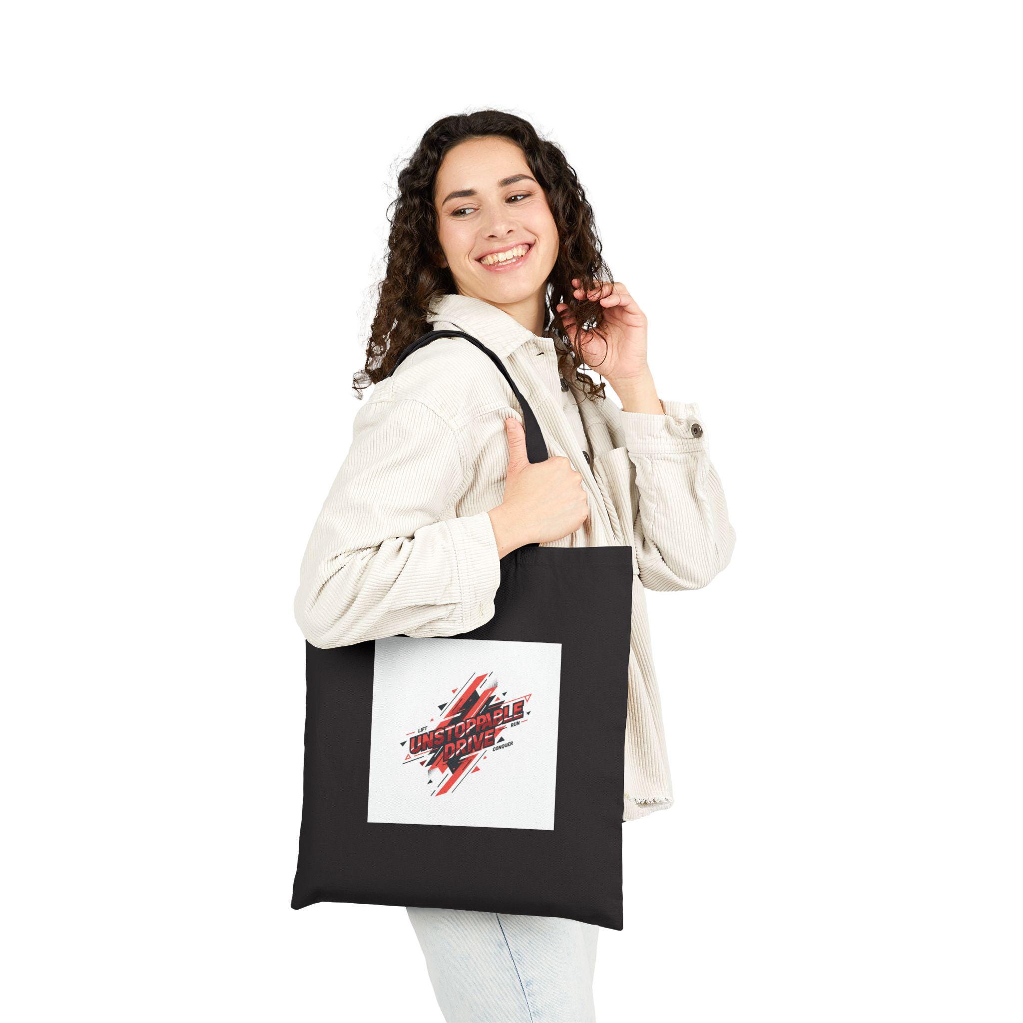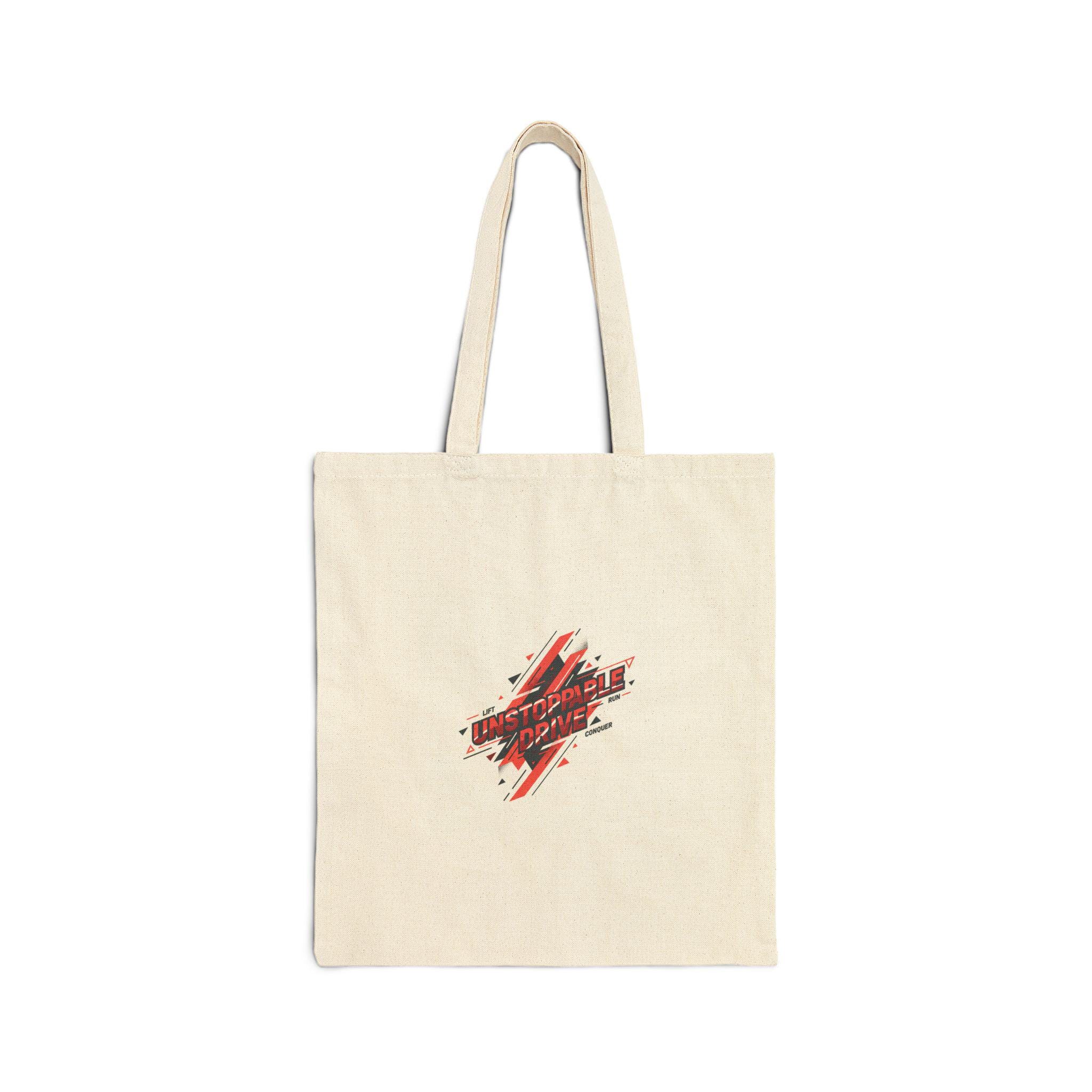 Crisp, gym-forward canvas tote with an energetic, motion-driven graphic in bold red and navy—designed to echo quick training mantras and the Fitness & Active Lifestyle aesthetic. The compact, angled emblem uses dynamic strokes and repetition to suggest speed and discipline, sitting low on a natural canvas ground for a sporty, studio-to-street look. Lightweight to carry yet rugged enough for gym gear, this tote complements active routines and pairs naturally with water bottles and workout essentials in the fitness wardrobe.