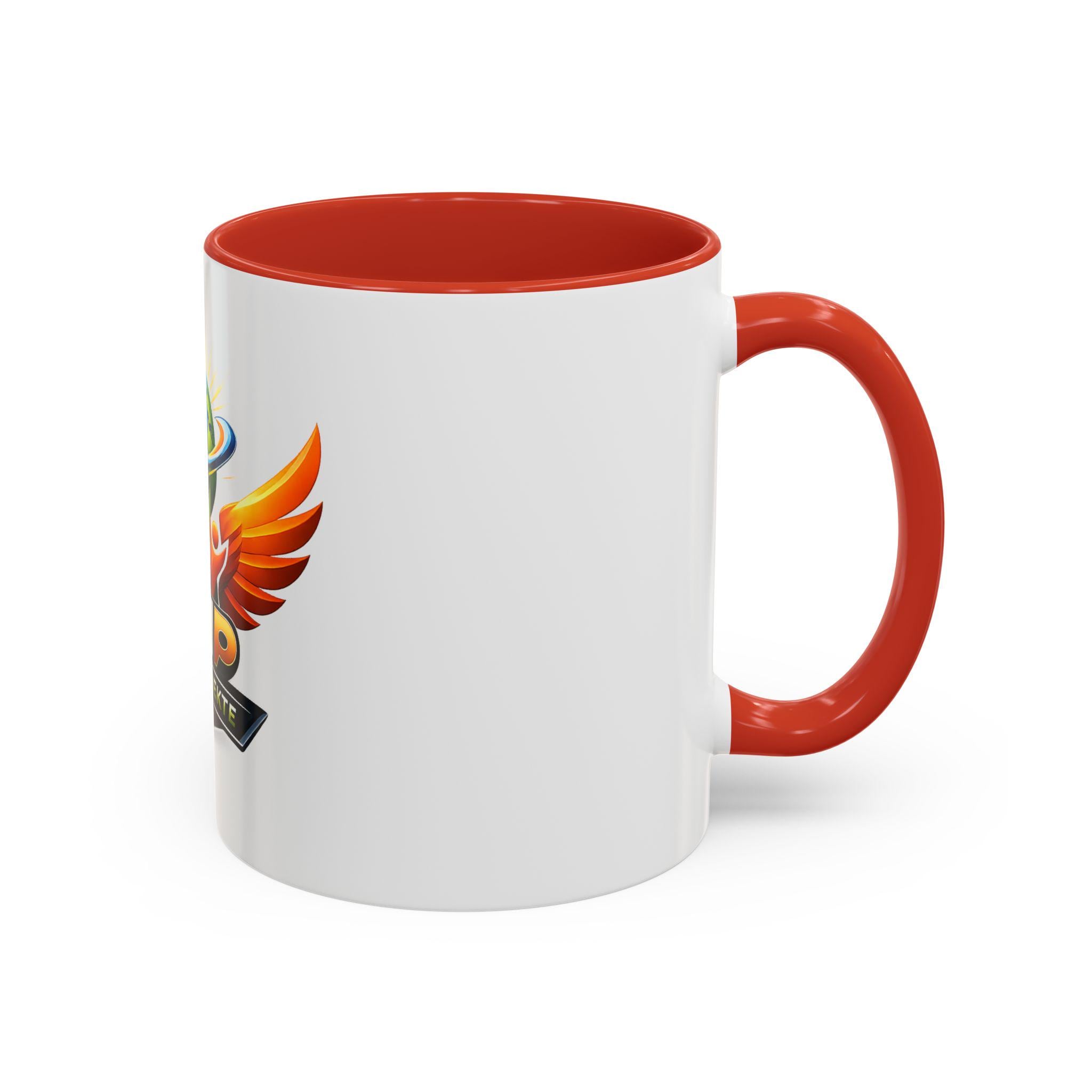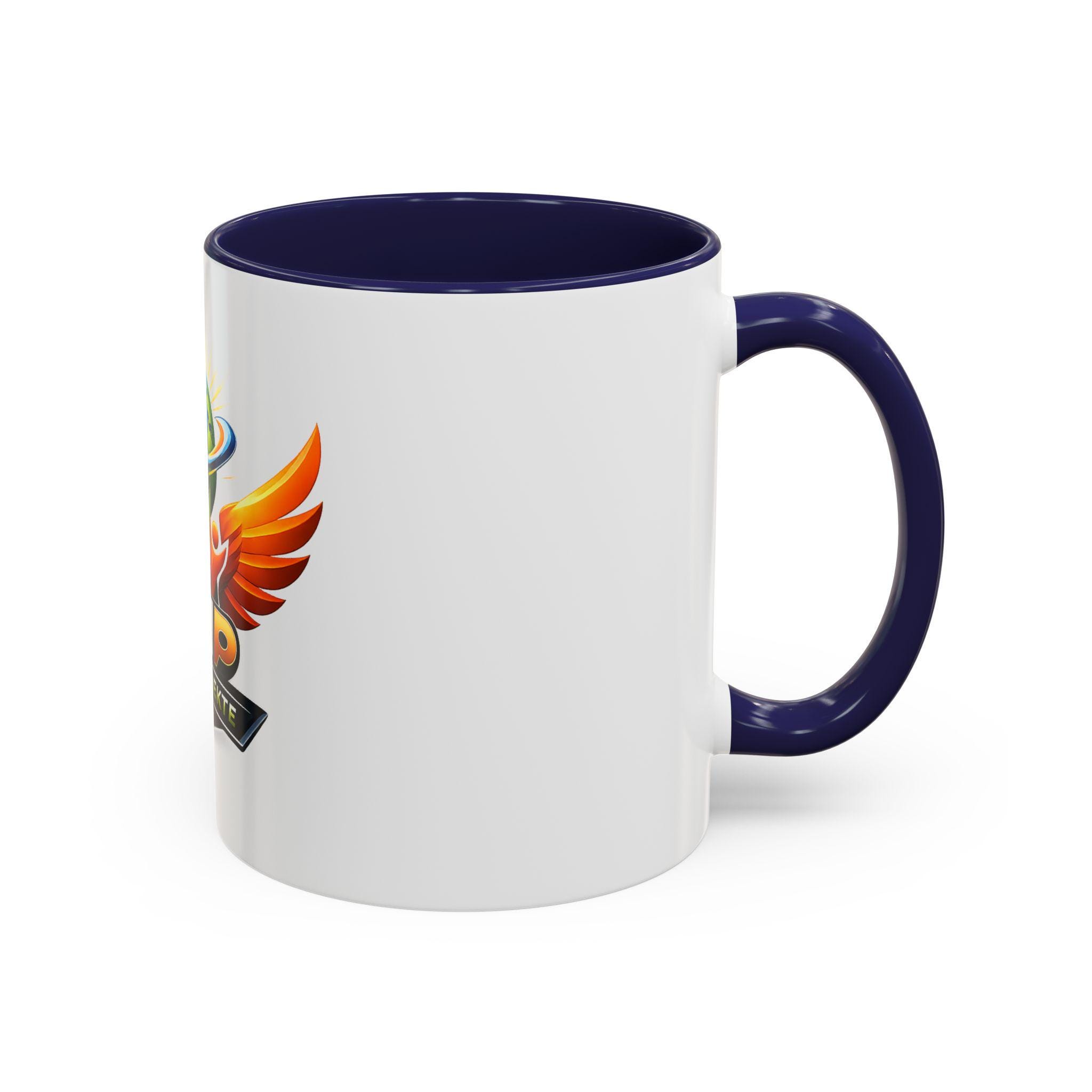 Bright, bold, and built for mornings that demand a little extra spark. This ceramic mug pairs a glossy white exterior with a contrasting colored interior and handle, showcasing a vibrant, full-color emblem that pops with energy. The design feels like a rallying badge — wings spread, globe centered, and colors that leap off the surface. It's the kind of mug that sits on a desk, announces team spirit, and keeps your coffee or tea warm through long planning sessions or late-night sprint work. Durable enough for everyday use, it stands up to microwave reheats and dishwasher cycles so the color stays vivid and the finish stays shiny. Choose 11oz for a classic cup or 15oz when you need an extra pour.