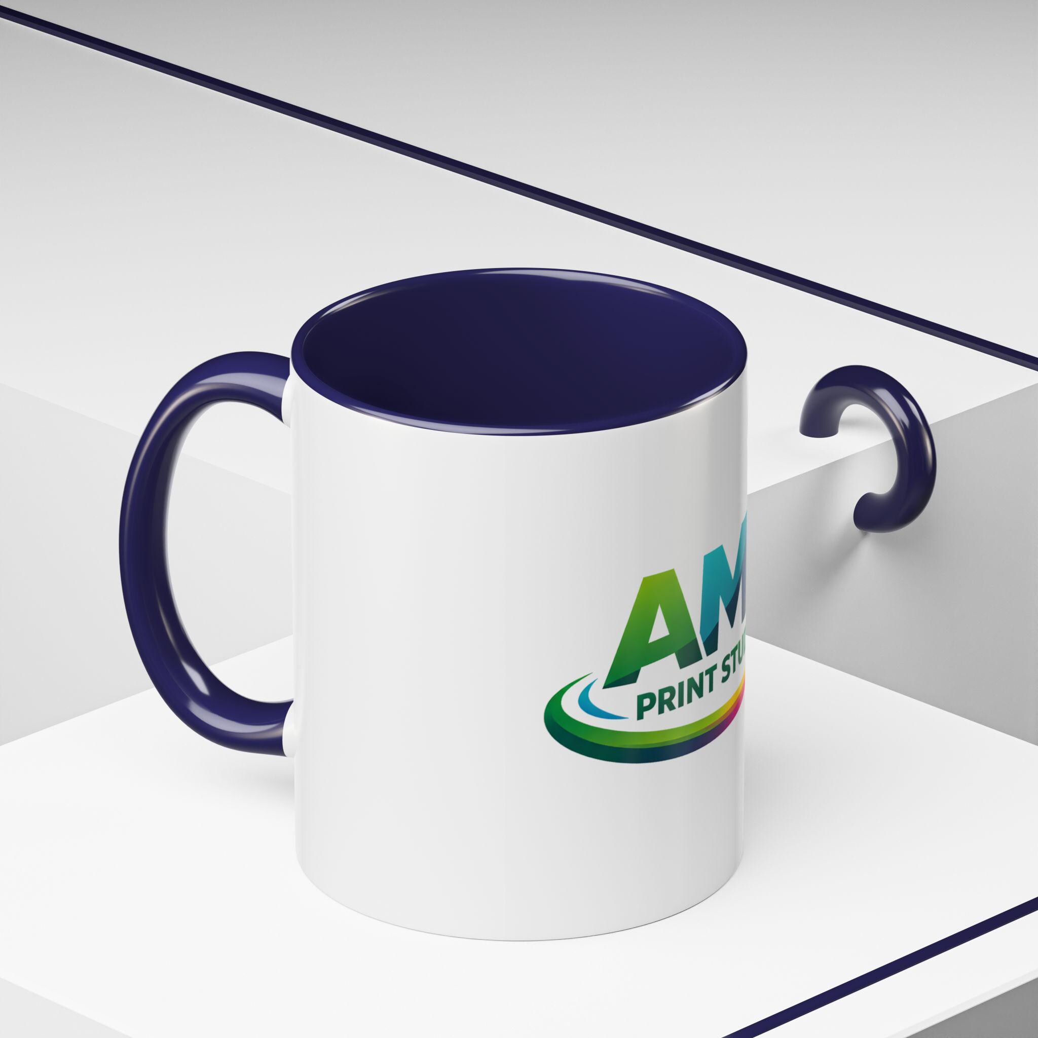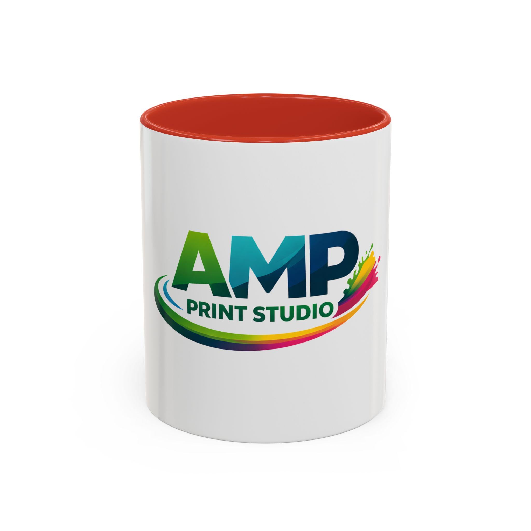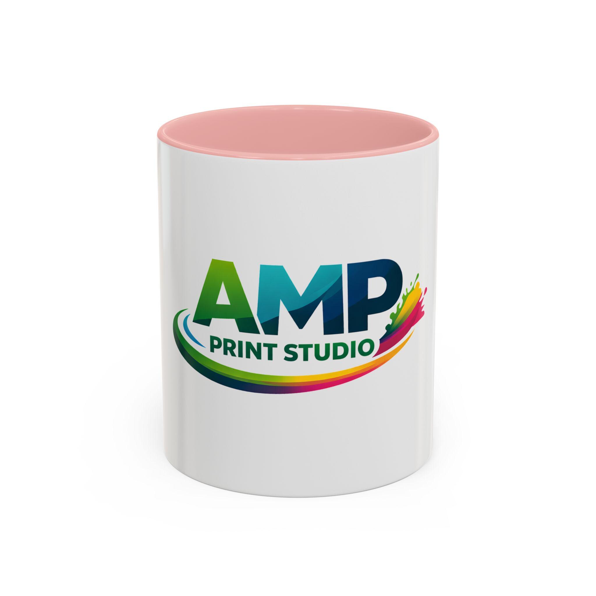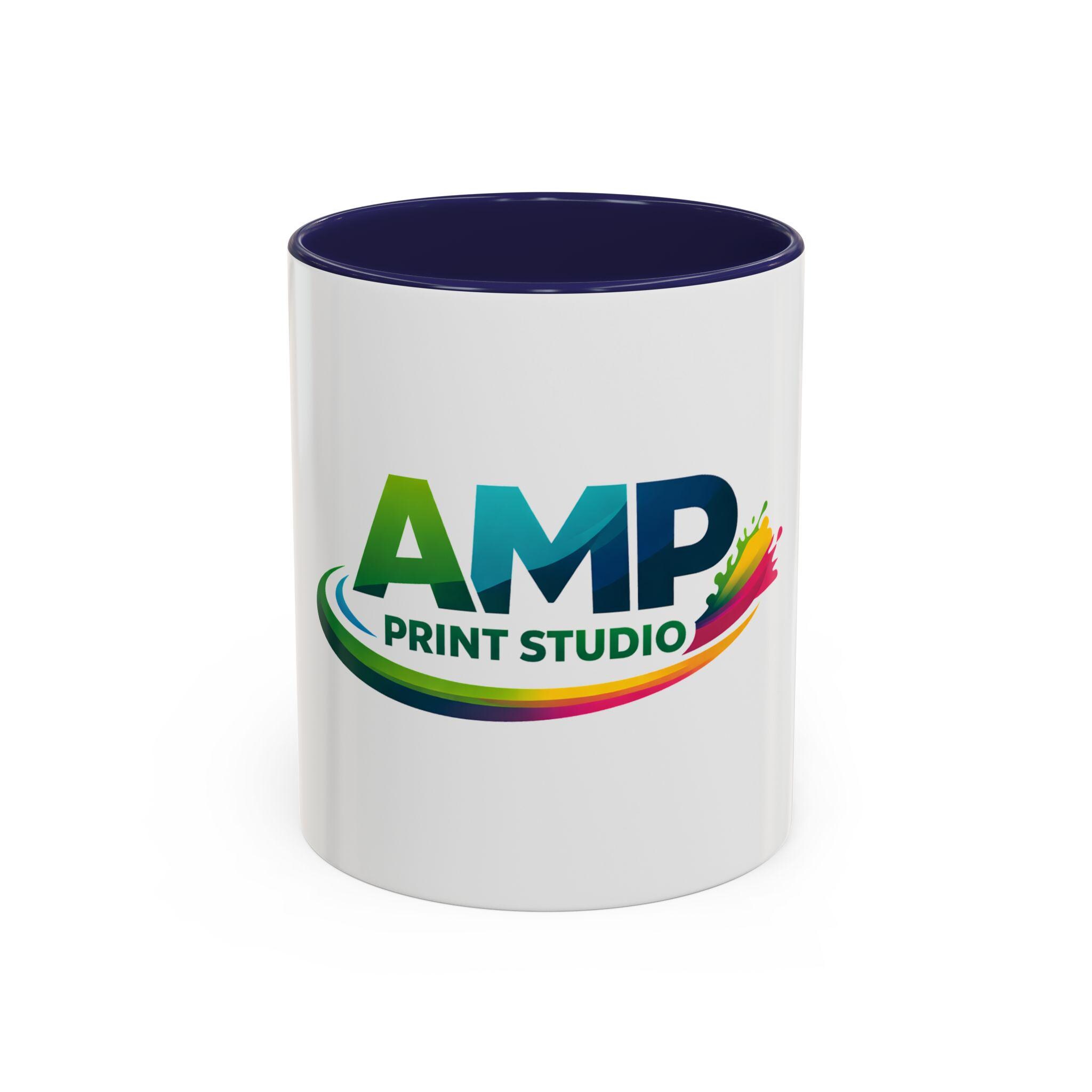 AMP Print Studio Logo Mug, Accent Coffee Mug | Black Handle and Rim, 11oz 15oz