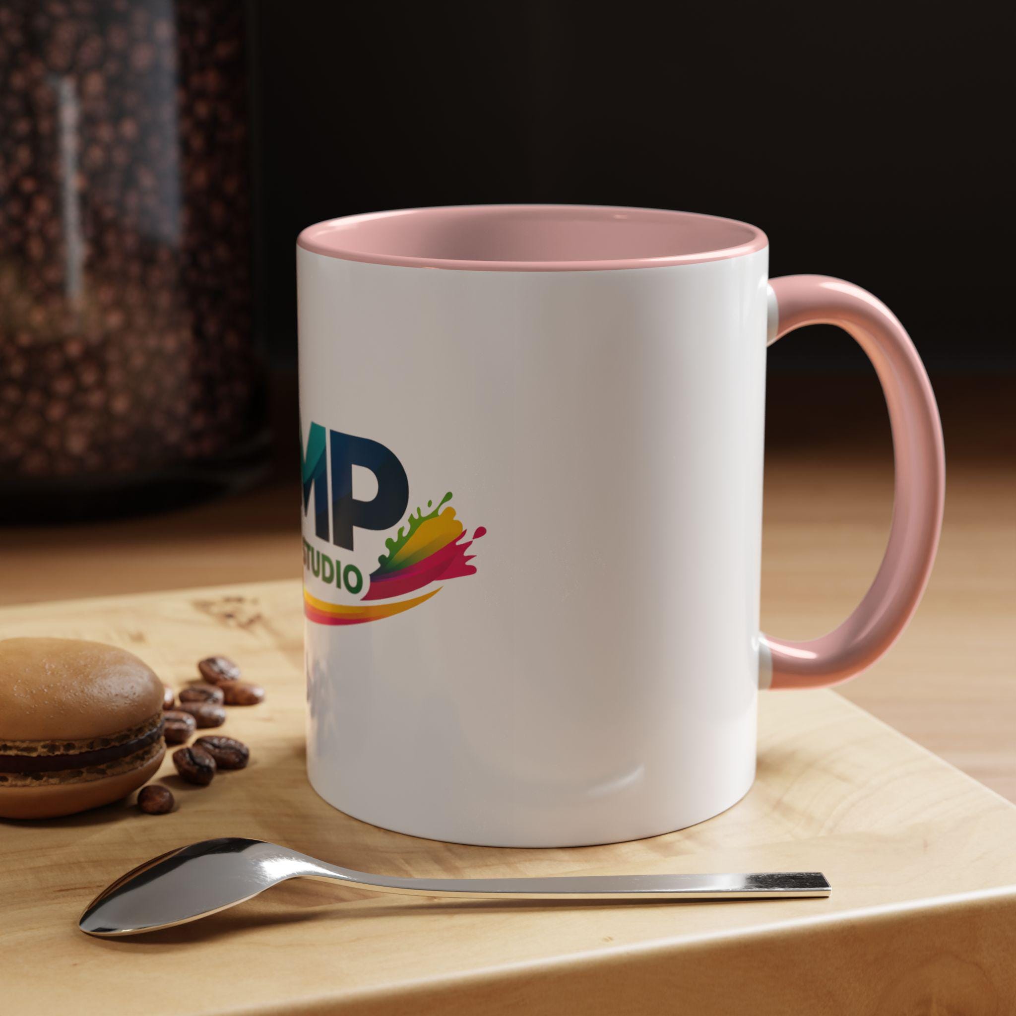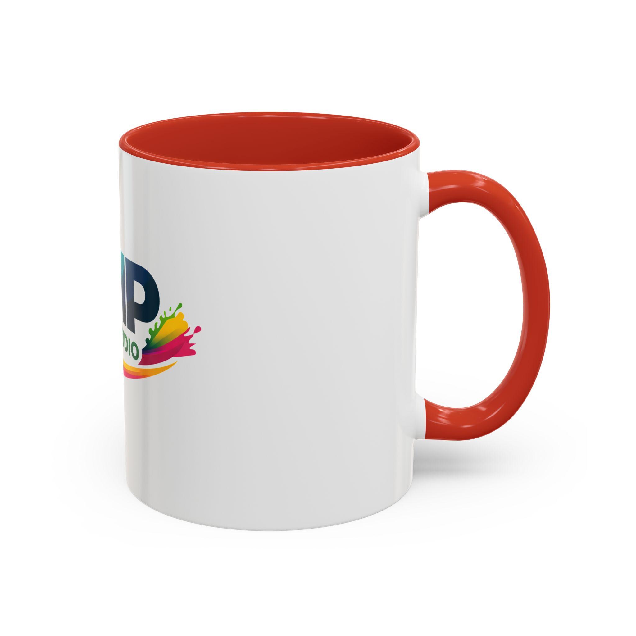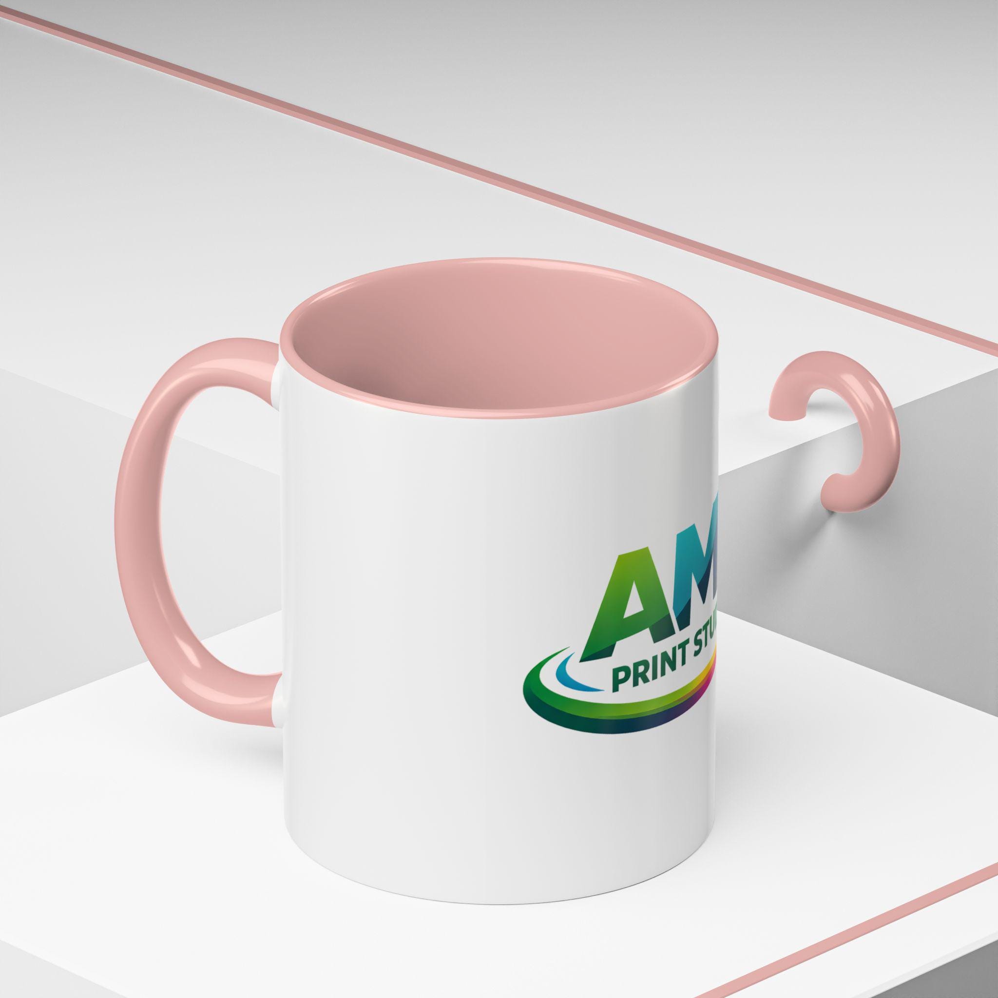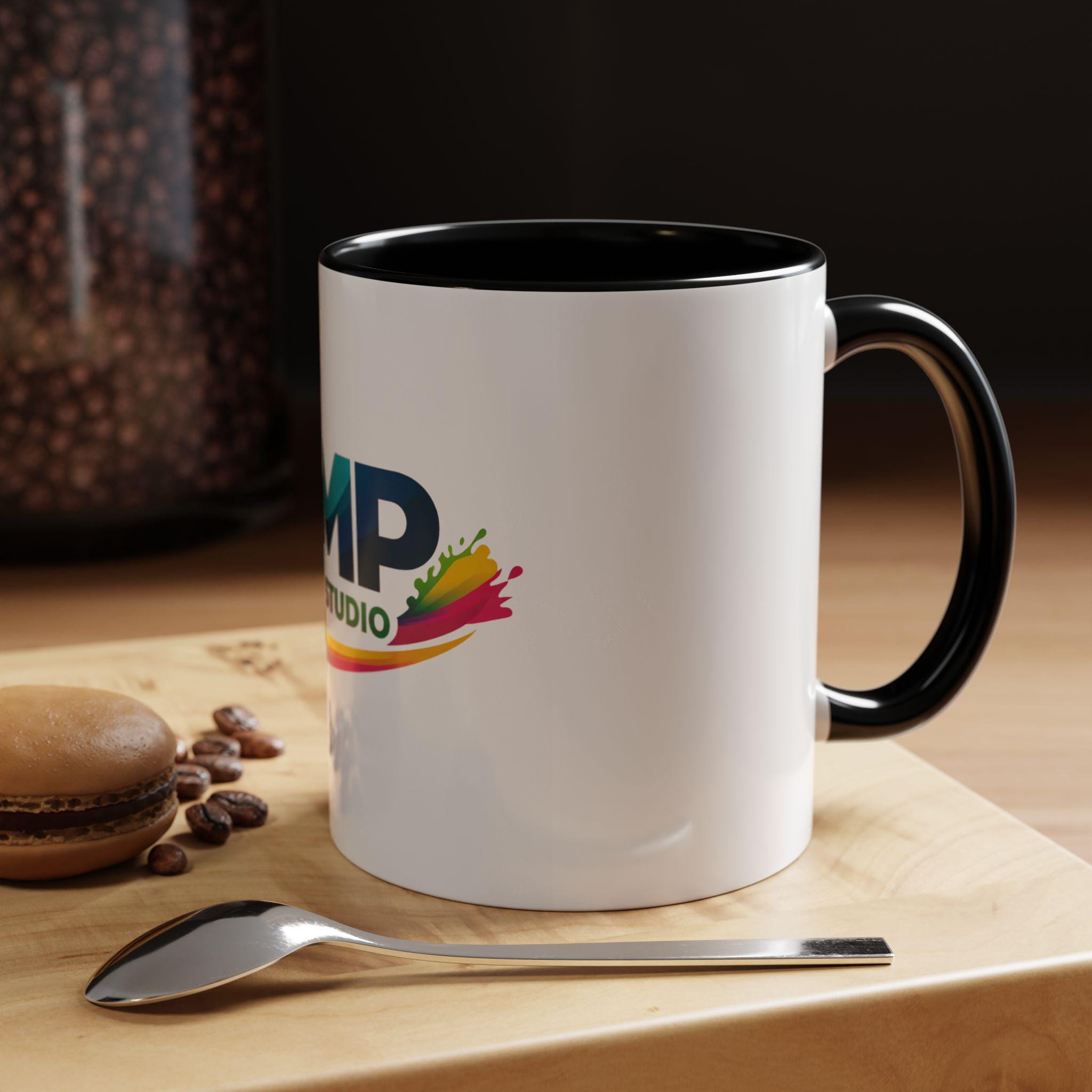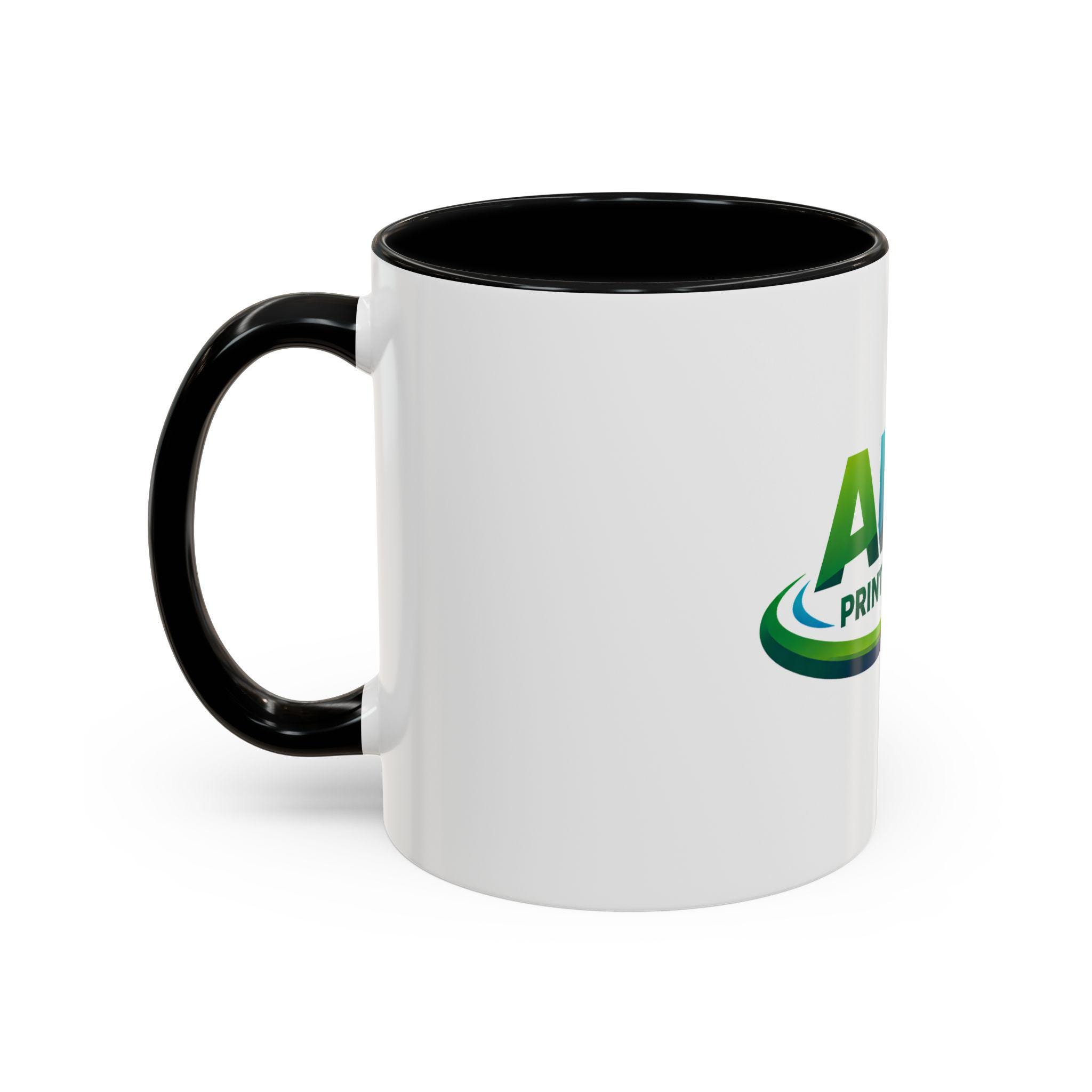 AMP Print Studio Logo Mug, Accent Coffee Mug | Black Handle and Rim, 11oz 15oz
